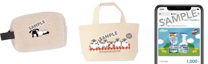 - 景品: 抽選で合計500名様に、ひつじのショーンオリジナルデザインポーチ、ひつじのショーンオリジナルデザインミニトートバッグ、またはカビキラーアルコール除菌オリジナルデザインQUOカードPay1,000円分が当たります。