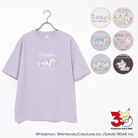 肌あたりがやさしい綿100%素材のゆるTシャツは、2つのデザインで提供します。ポケットからポケピースのなかまたちが顔をのぞかせるワンポイントデザインと、存在感のある大きめフロントプリントデザインです。
