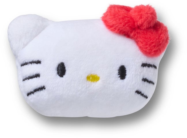 さらに、リベット部分にはシルバーのハローキティをあしらい、細部まで世界観を表現しています。本アイテムには、19個のジビッツ™ チャームが付属する点が特徴です。編みぐるみ風のハローキティや、ふわふわとしたぬいぐるみのシナモロール、ポムポムプリンのチャームなど、存在感のあるデザインが揃います。サンリオキャラクターズの魅力をぎゅっと詰め込んだ特別な一足です。