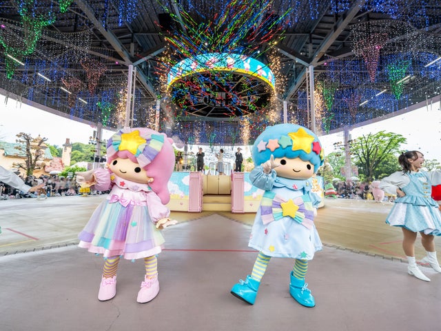 開園35周年を記念したセレモニーでは、ピンクを基調にレインボーカラーのフリルやリボンをあしらった新コスチューム姿のハローキティをはじめとする豪華22キャラクターが圧巻のダンスパフォーマンスを披露し、会場は大きな歓声と笑顔に包まれました。ゲストからは、新コスチュームの「華やかでお祝いにぴったりな衣装が、とてもかわいい!」といった声が寄せられました。