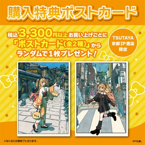 京都IP書店で販売する『Character Creative Collection – The 24 Seasons of Japan』シリーズ『P丸様。』全グッズを対象に、1会計3,300円(税込)以上購入ごとに、ノベルティ「オリジナルポストカード」をランダムで1枚プレゼントします。