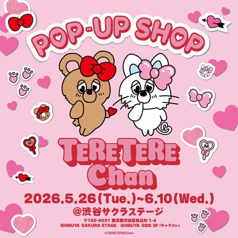 人気キャラクターTERE TERE Chan(てれてれちゃん)初のPOP-UP SHOPが、2026年5月26日より渋谷サクラステージで期間限定開催します。