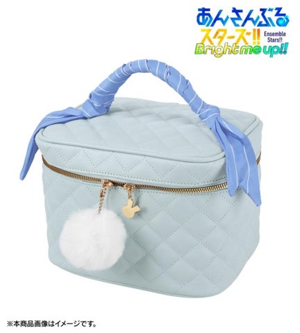 普段使いしやすい水色のボディに、Ra*bitsの衣装のセーラー服をイメージしたリボンをハンドル部分にあしらいました。ファスナーには、うさぎをモチーフにしたチャームと、うさぎのしっぽをイメージしたファーチャームを添えています。