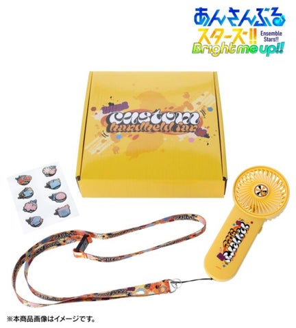 ハンディファン本体に加えて、ストラップが付属するため、首掛けでも使用できます。付属のメンバーモチーフのシールで、ファン本体を自由にカスタマイズ可能です。