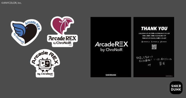 『Arcade REX by ChroNoiR』第2弾のアイテム詳細や購入は、スニダンアプリ内の特設ページにてご確認ください。また、ChroNoiR公式YouTubeチャンネルでは記念配信を視聴できます。