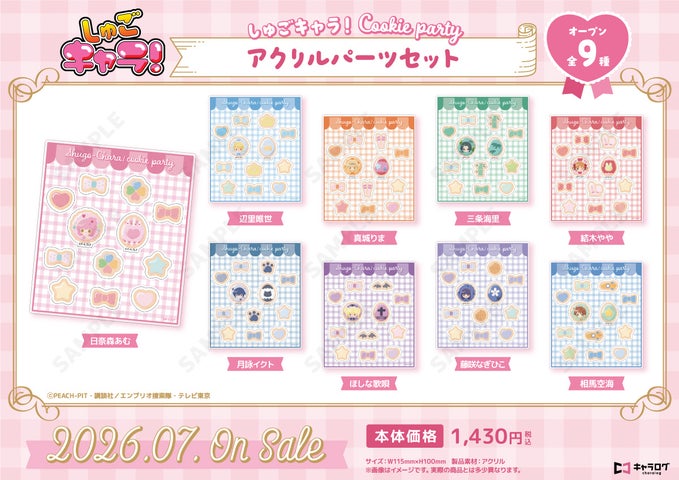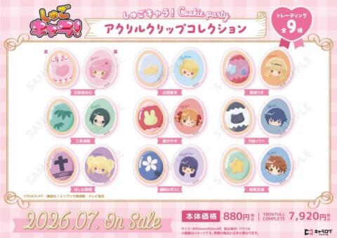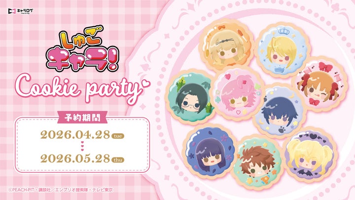 TVアニメ「しゅごキャラ!」のオリジナルグッズ「Cookie party」シリーズが、2026年4月28日(火)12:00より予約受付を開始しました。あむちゃんたちがアイシングクッキー風のパステルカラーデザインで描かれ、全8種のグッズが登場します。