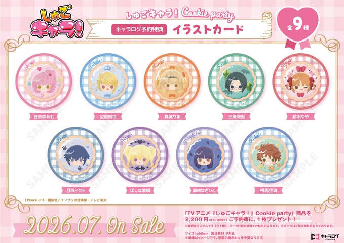 「キャラログ」にて「しゅごキャラ! Cookie party」商品を2,200円(税込)ご予約ごとに、特典イラストカードを1枚プレゼントします。この限定特典は「キャラログ」での予約時のみ入手可能です。