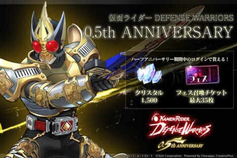様々な豪華キャンペーンが開催中の『仮面ライダー DEFENSE WARRIORS』をぜひこの機会にダウンロードし、ハーフアニバーサリーを楽しみましょう。