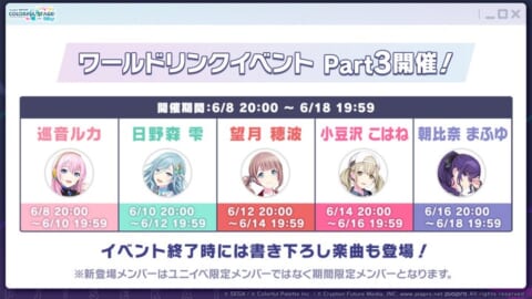 Part3もイベント終了時に、イベントメンバーが歌唱する新規書き下ろし楽曲が登場します。