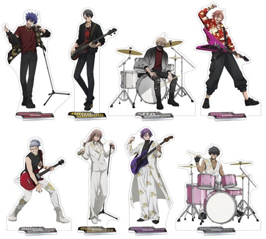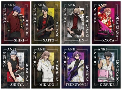 今回の新商品では、鬼機関から四季・無陀野・皇后崎・花魁坂、桃太郎機関から深夜・神門・月詠・桜介のキャラクターが登場します。「対バン」をテーマに、楽器やマイクを手に躍動する新規イラストを使用しています。