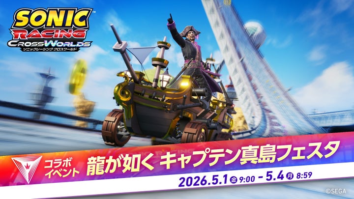 『ソニックレーシング クロスワールド』に『龍が如く』シリーズの真島吾朗が無料アップデートで参戦。期間限定イベントやセール、フリープレイも実施します。