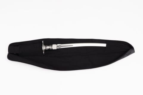 このソフトケースは、外装に耐久性に優れた600デニールのナイロン生地を使用しています。ハンドストラップは長さ調整が可能で、手持ちと肩掛けの両スタイルに対応します。内部には「白の契約(SMT-A1)」の柄を固定する脱落防止用の幅広のテープと、刃先を守るホルダーを装備し、クッション材が万が一の衝撃から本体を保護する設計です。