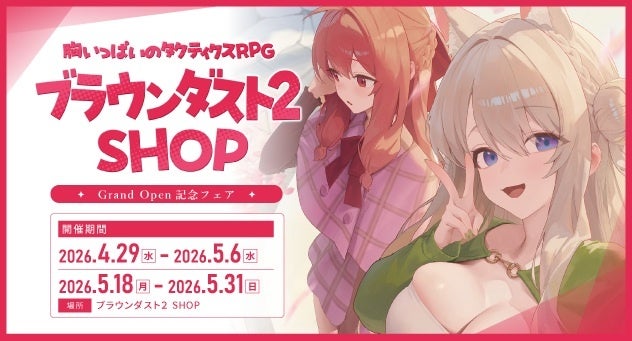 胸いっぱいのRPG『ブラウンダスト2』の常設店舗「ブラウンダスト2 SHOP」が、明日2026年4月29日(水)に東京・秋葉原へオープンします。5月31日(日)までグランドオープンフェアも開催されます。開催内容や参加方法を詳しく紹介しますので、ぜひ参考にしてください。