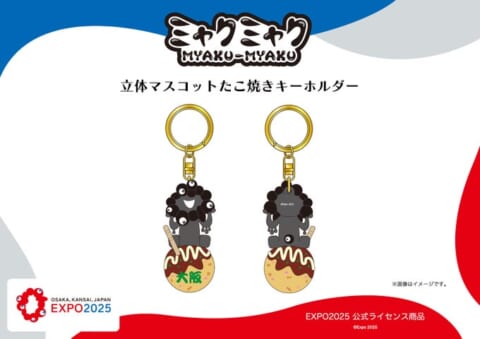 株式会社ヘソプロダクションは、EXPO2025公式ライセンス商品として「ミャクミャク 立体マスコットたこ焼きキーホルダー」を発売します。可愛らしい黒ミャクミャクがたこ焼きに乗ったデザインが特徴です。