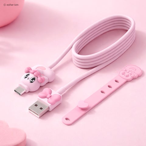大人気キャラクター「エスターバニー」から、かわいさと実用性を兼ね備えたUSBケーブルが登場します。この製品は、充電とデータ転送に対応しており、ケーブルバンドが付属するため持ち運びや収納にも便利です。