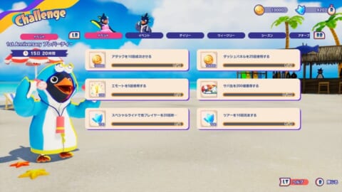 期間中、チャレンジをクリアすることで、ネームプレート「パーティー準備中!」やクリスタルを獲得できます。また、ショップにはスキン「三角コーン 山」やエモート「スウィングブラザーズ」をはじめとした限定アイテムが登場します。さらに、過去シーズンのショップアイテムも復刻販売され、この機会に手に入れることが可能です。