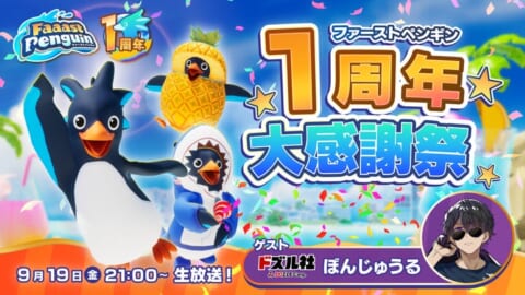 2025年9月19日(金)21:00より、リリース1周年直前を記念した公式生放送が配信されます。この生放送では、1周年イベントに関する最新情報や、ファンアートの紹介が予定されています。ファンアートはハッシュタグ「 #ファスペンファンアート 」または「 #FaaastPenguinFanArt 」を付けてXに投稿することで募集されています。