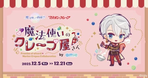 『魔法使いの約束』と「マリオンクレープ」のコラボレーション企画『「魔法使いのクレープ屋さん」by amie』が、2025年12月5日(金)より12月21日(日)まで開催されます。コラボ記念グッズは2025年9月25日(木)まで予約受付中です。限定クレープや描き起こしグッズが登場し、購入に応じて全21種の特典イラストカードをプレゼント。開催内容や参加方法を詳しく紹介するのでぜひ参考にしてください。