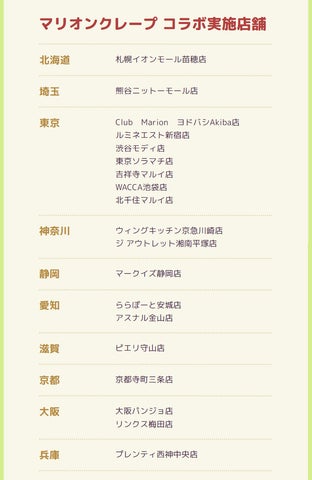 - 開催店舗: 10エリア19店舗のマリオンクレープ