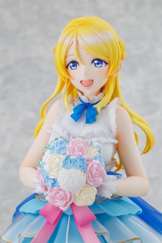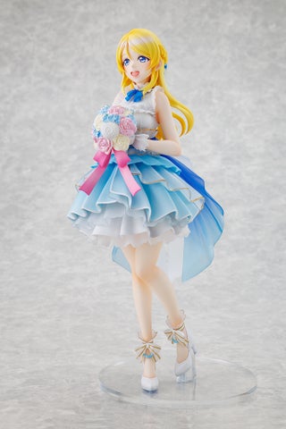 「絢瀬絵里 LoveLive!Days 5th Anniversary ver.」は、伊能津氏によって描き下ろされた「LoveLive!Days」5周年記念号の表紙イラストを忠実に再現しています。美しいドレスに身を包み、優しい笑顔を浮かべた絢瀬絵里の姿は、丁寧な造形と繊細な塗装によって表現されています。フィギュアの美しさをさらに引き立てるため、要所にはクリアパーツが採用されています。