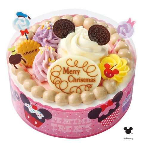 - ディズニーキャラクターをテーマにしたケーキ。キャラクターピック付きで、いちごやブルーベリー、バナナ、チョコ、ミルクの重層的なクリームのハーモニーを楽しめます。