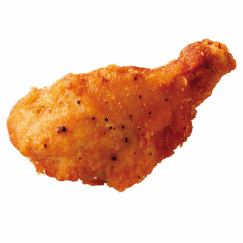 - ジューシーな骨付きもも肉をサクッと軽い衣で仕上げ、11種類のスパイスで味付けした旨味たっぷりのチキンです。