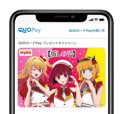 - キャンペーン名: DyDo×TVアニメ『【推しの子】』オリジナルQUOカードPayなど豪華賞品が合計1,200名様に当たるコラボキャンペーン