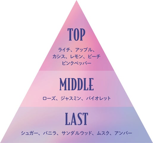 香りには、華やかなバイオレットやローズなどの花々に、ほんのりスパイシーなフルーツを調和させた「フルーティーシュガー&ピンクペッパーの香り*4」を採用。ジューシーな女の子らしさとエネルギーを感じさせる仕上がりです。