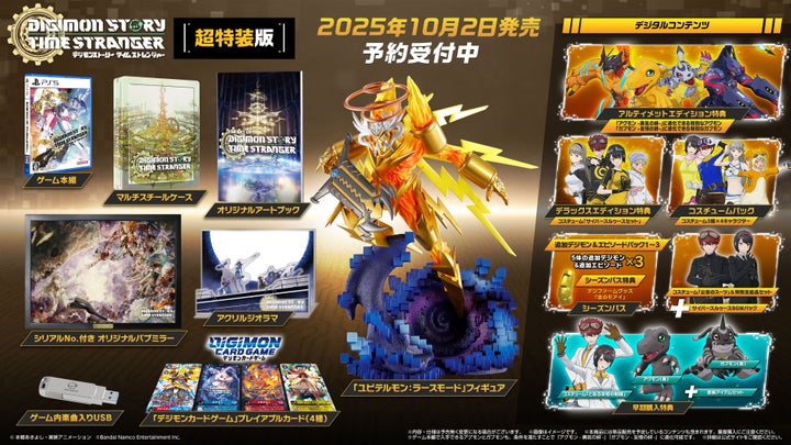 株式会社バンダイナムコエンターテインメントは、『デジモンストーリー タイムストレンジャー』の発売日を2025年10月2日(STEAM版は10月3日)と発表しました。reche氏が歌うテーマソングトレーラー公開に加え、ゲーミングPCが当たるキャンペーン、セーブデータ引継ぎ可能な体験版、東京ゲームショウ2025出展情報、予約特典など、最新情報が多数公開されています。