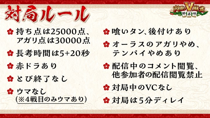 これらのルールにより、各出場者の戦略や判断が勝敗を大きく左右する、見応えのある対局が期待されます。