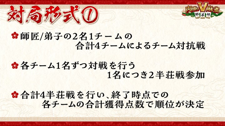 白熱のチーム対抗戦!「肉獲りV麻雀~師弟杯~」の対局形式とルール