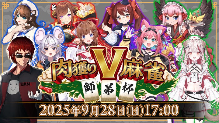 2025年9月28日(日)にVTuberグループ「.LIVE」と「ぶいぱい」による『雀魂』のカジュアルイベント「肉獲りV麻雀~師弟杯~」が開催されます。総勢8名のVTuberが師弟コンビを組み、高級肉をかけて麻雀対局に挑む本イベントの詳細をお伝えします。