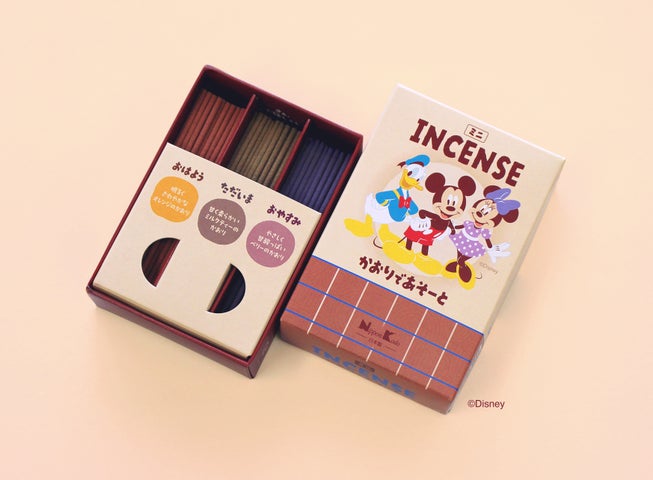 日本香堂では、2025年3月発売の「<ディズニー>シリーズ」インセンスも展開しています。こちらはディズニーキャラクターたちの心温まるあいさつをコンセプトに、「さぁ、お話しよう」をテーマに開発されたシリーズです。一日の大切な瞬間に寄り添う「かおりでおはよう」(オレンジの香り)、「かおりでただいま」(ミルクティーの香り)、「かおりでおやすみ」(ベリーの香り)の3種類の香りで、それぞれのシーンを彩ります。