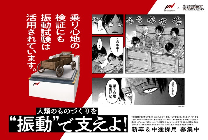 - 内容: 「もしも進撃の世界に振動試験があったなら」をテーマにした12種の広告ビジュアルを公開。