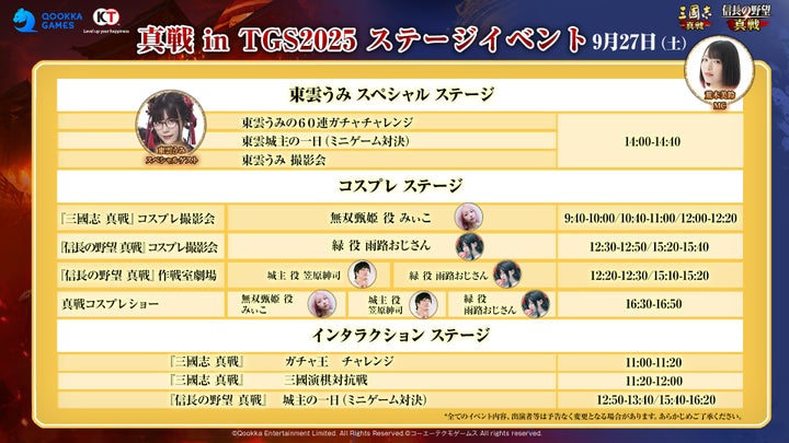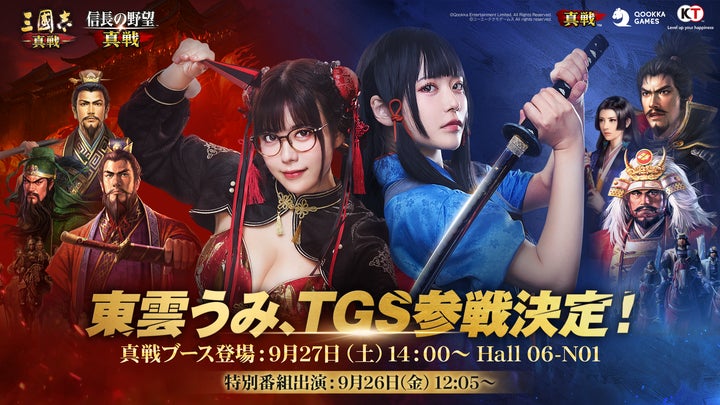 Qookka Gamesは、東京ゲームショウ2025に『信長の野望 真戦』と『三國志 真戦』を出展することを発表いたしました。人気コスプレイヤーの東雲うみさんが真戦ブランドPR大使としてブースに登場し、新作『信長の野望 真戦』の事前登録も開始されています。