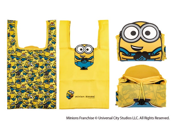 「ミニオンinカンサイ エコバッグ」は、ボブの形にコンパクトに折りたたむことが可能な、お茶目で便利なアイテムです。ミニオンたちをカバンに忍ばせ、いつでも一緒に楽しいお出かけ時間を過ごすことができます。