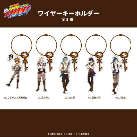 全5種類のワイヤーキーホルダーは、キャラクターイラストが際立つアイテムです。