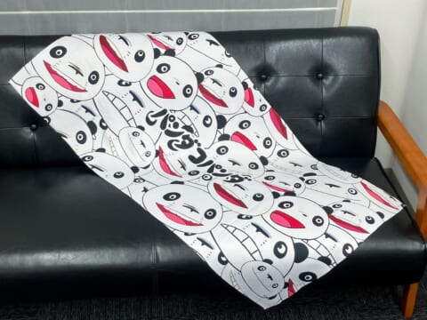 パパンダとパンちゃんのおかおがデザインされたバスタオルです。
