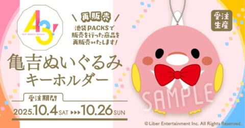 イケメン役者育成ゲーム『A3!』より、「亀吉ぬいぐるみキーホルダー」が受注生産商品として再登場します。本商品の基本情報は以下の通りです。