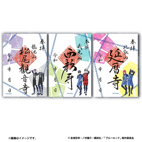 『ブルーロック』オリジナル御朱印は、全3種が各寺社で異なる絵柄にて頒布されます。価格は各1,200円です。