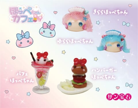 カフェ限定のコラボグッズも数量限定で販売されます。新キャラクターであるゆららときららのほっぺちゃんフィギュアをはじめ、カフェメニューを再現したスイーツデコストラップなど、ここでしか手に入らない特別なアイテムが用意されています。限定ほっぺちゃんはすべてストラップ付きで提供されます。