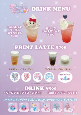 限定メニューを注文された方には、「ほっぺちゃん」、「ゆらら」、「きらら」のオリジナルコースターがランダムでプレゼントされます。どのキャラクターのコースターが手に入るか、コレクションの楽しみも提供されます。