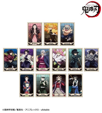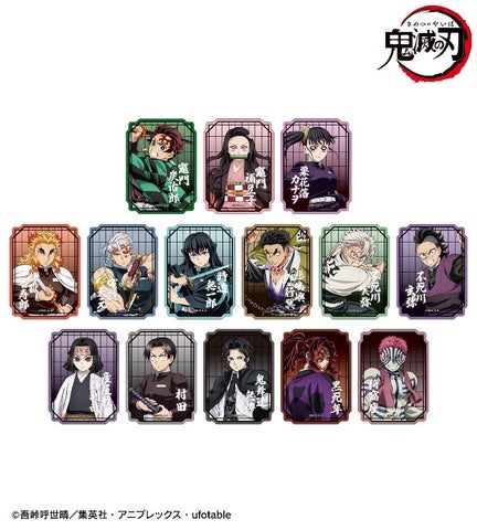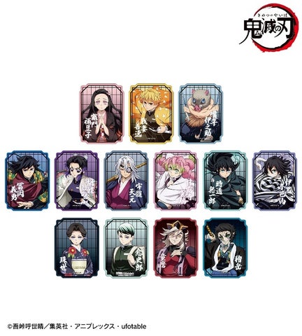 竈門炭治郎、竈門禰?豆子、栗花落カナヲ、煉?獄杏寿郎、宇髄天元、時透無一郎、悲鳴嶼行冥、不死川実弥、不死川玄弥、産屋敷輝利哉、村田、鬼舞辻?無惨、黒死牟、猗窩座の全14種がラインナップされています。