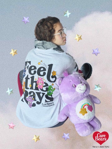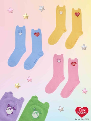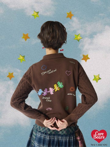 • 特徴: 5色のケアベアのアートを採用し、ドリーミーな世界観をニットのジャガード、スウェットの刺繍、ふわふわ素材の小物で表現。
