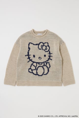 ハンドニットのような温かみのある編み地で、可愛らしいハローキティが表現されたプルオーバーです。AWシーズンにぴったりの素材感で、コーディネートの主役となる一着です。