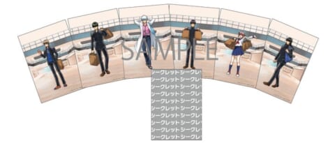 全6種のスタンプを集めたスマートフォンの画面をPOP-UP STOREスタッフに見せると、スタンプコンプリート特典として、描き下ろしイラストを使用したクリアファイル(全6種)とシークレットクリアファイル(1種)からランダムで1種が進呈されます。デザインは選択できません。特典交換はPOP-UP STOREの営業時間内となります。