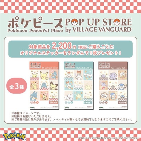 • 特典: 「ポケピース」商品を2,200円(税込)お買い上げごとにオリジナルステッカー(全3種)をランダムで1枚プレゼント