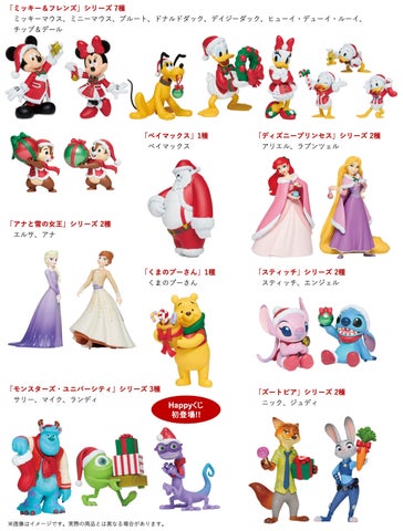 今回のくじでは、お馴染みの『ミッキー&フレンズ』に加え、『ディズニープリンセス』シリーズからアリエルとラプンツェル、『アナと雪の女王』シリーズからエルサとアナが登場します。さらに、『くまのプーさん』や『ベイマックス』、今年実写映画化で話題となった『スティッチ』シリーズ、続編映画の公開が発表された『ズートピア』シリーズもラインナップ。Happyくじフィギュアに初登場となる『モンスターズ・ユニバーシティ』のランディも加わり、総勢28のキャラクターたちが勢揃いします。