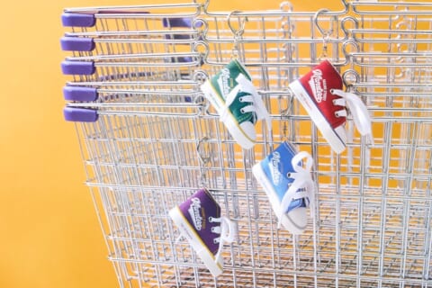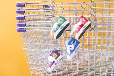 スニーカーをモチーフにしたカジュアルな雰囲気のキーホルダーです。片面には野球を楽しむキャラクターたちのイラスト、もう片面にはセサミストリートマーケットオリジナルのチームロゴ「SESAME STREET Monsters」がプリントされています。靴ひもやソールのディテールまで丁寧に表現された立体的なフォルムで、バッグやポーチ、ドリンクホルダーにつければ存在感のあるアクセントになります。グリーン(オスカー)、レッド(エルモ)、ブルー(クッキーモンスター)、パープル(ビッグバード)の全4色展開です。
