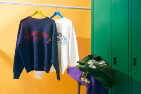 レトロでスポーティーなVネックニットカーディガンは、胸元に相良刺繍で仕上げた存在感のある「S」ロゴと、野球を楽しむキャラクターたちの刺繍が施されています。ゆったりとしたシルエットと腰までの着丈で、リラックス感のある着こなしが可能です。ネイビー(エルモ)、アイボリー(クッキーモンスター)、グリーン(オスカー)、パープル(ビッグバード)の全4色展開で、同シリーズのキャップやソックスとのリンクコーディネートも推奨されています。